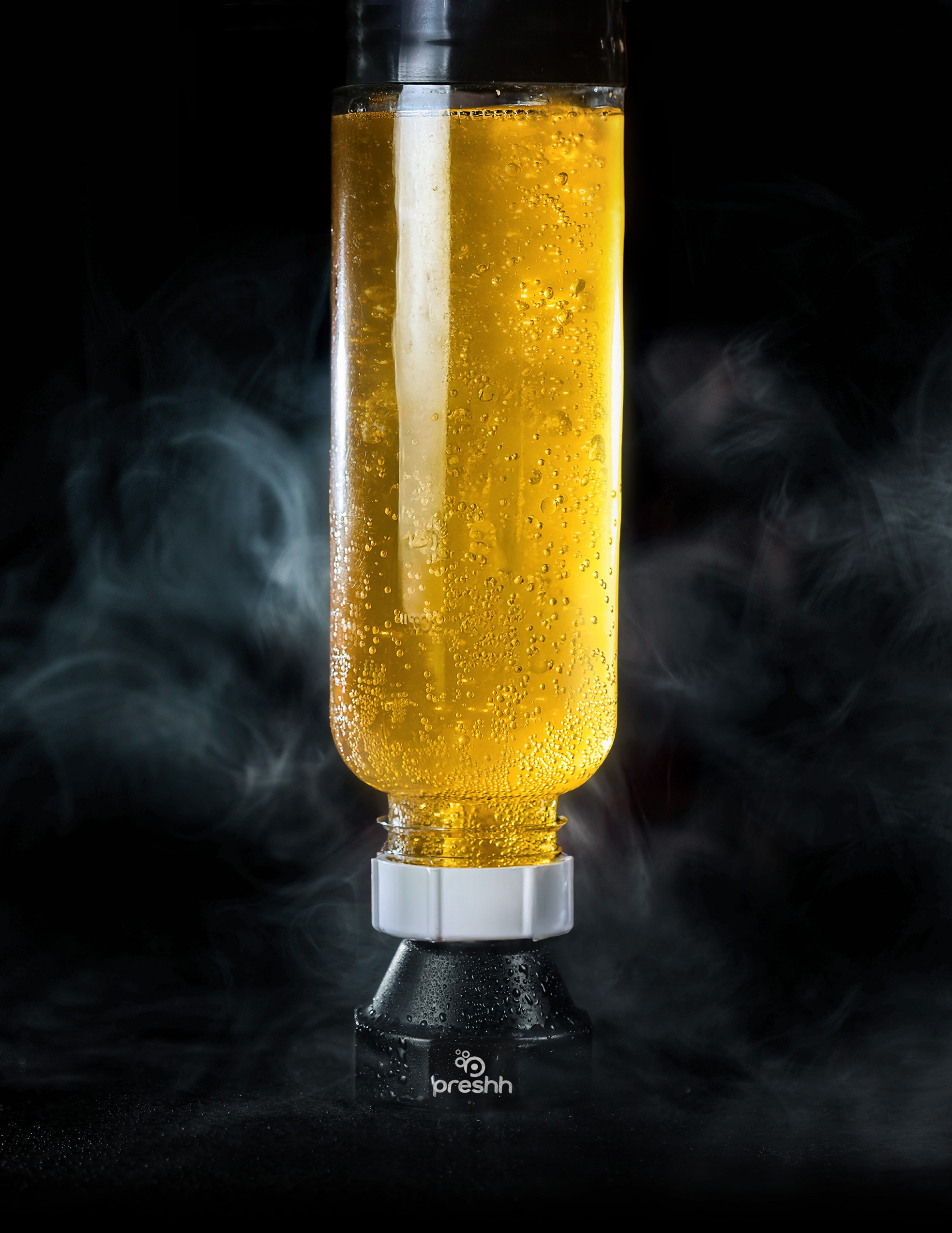 Adiciona gás em bebidas com ou sem álcool em pouco tempo.